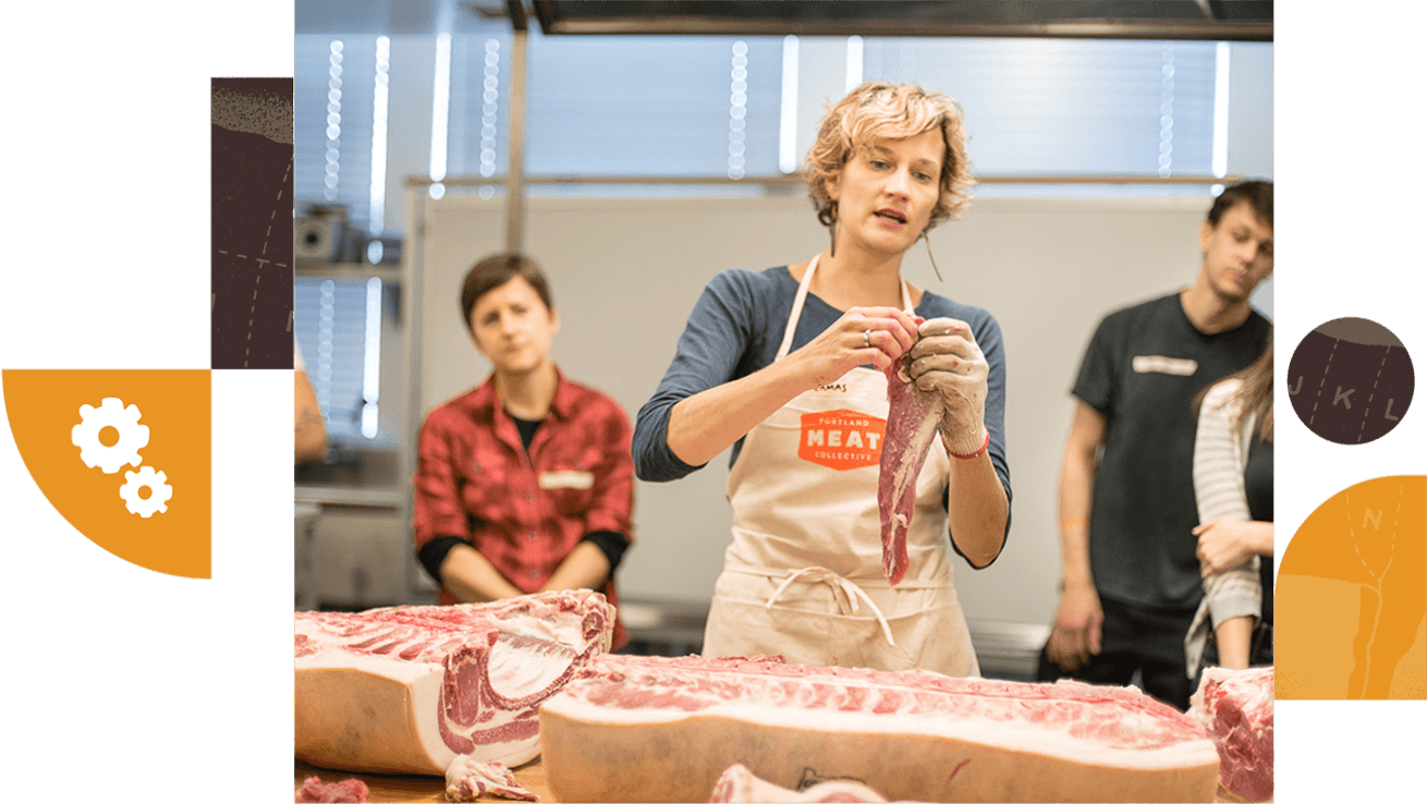 The Good Meat Project (GMP) was founded in 2014, by a butcher, a chef, a farmer, and a consumer—Camas Davis, Sarah Wong, Sarah King, and Tanya Harding. They had come together many years before through the Portland Meat Collective, an LLC that Camas opened in 2009 in Portland, Oregon, with the aim of using experiential meat education to teach everyone along the meat supply chain where responsible meat comes from and how best to get it to their tables. Translation: The four founding members of the GMP met while butchering a pig! This shared experience helped shape the original mission of the organization, which was to open source the Meat Collective model across the country. Since then, the GMP has incubated over a dozen independently-owned Meat Collectives across the country, and has advised several dozen existing meat businesses, from farms and ranches to restaurants and butcher shops, whose owners wish to offer experiential, hands-on meat education to their customers.