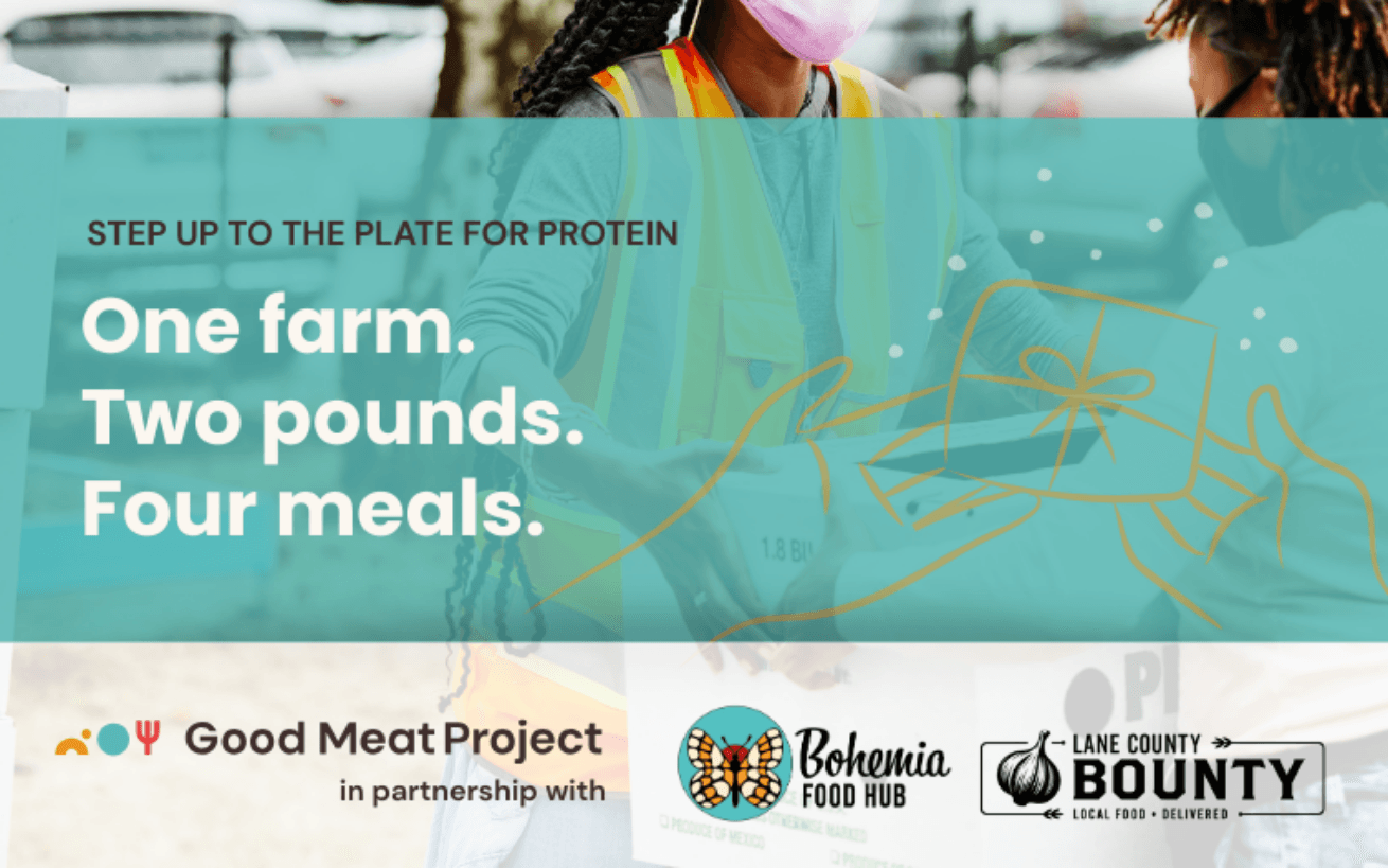 Your donation today not only ensures that values-based meat from local Good Meat® producers is included in food boxes in Lane County, OR but it helps provide nutritionally dense proteins to vulnerable community members (children, elders, and low-income families) AND multiplies our collaborative effort with our community organization, food hub, and food box delivery service in this community!