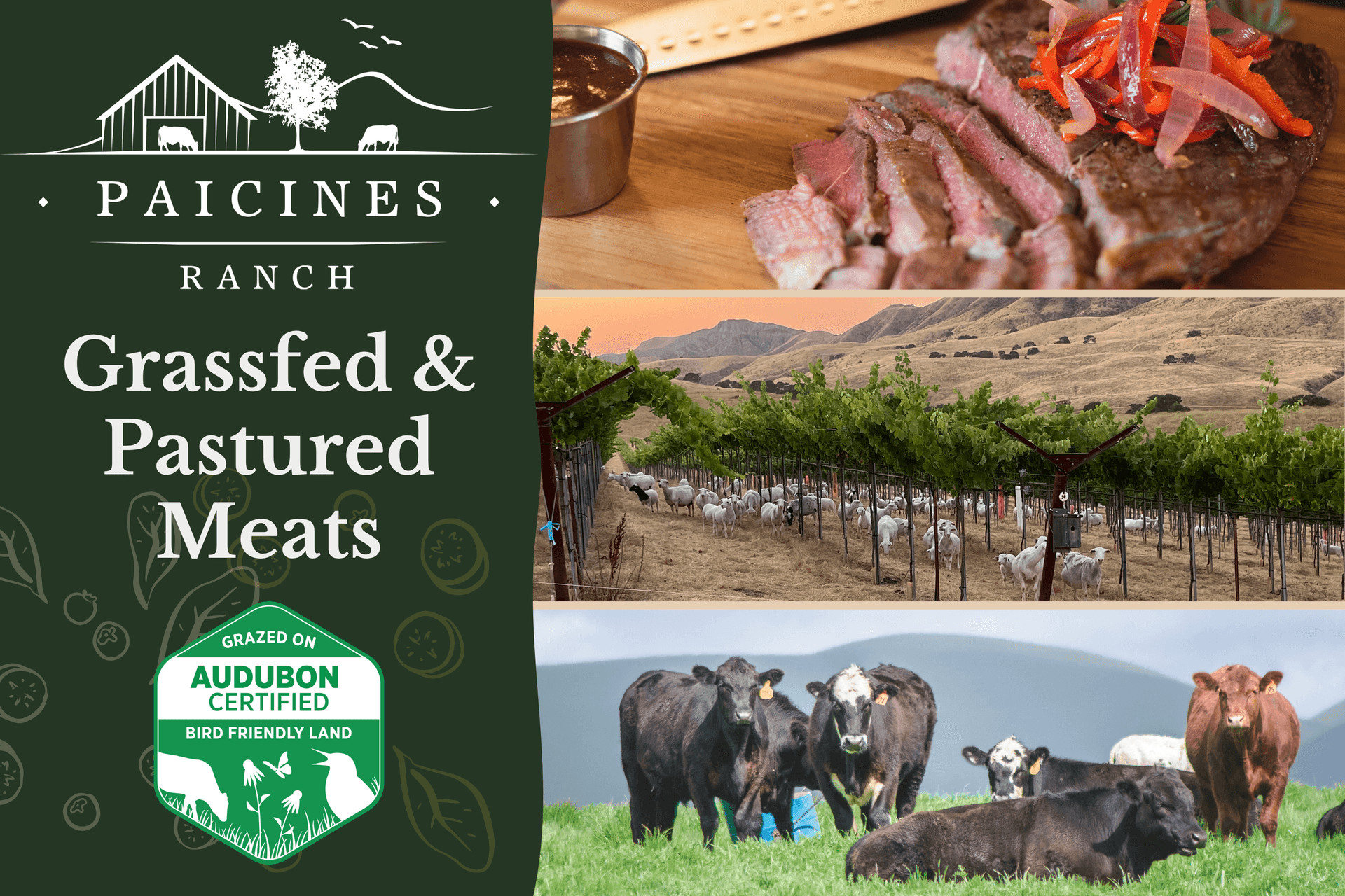 Paicines Ranch is a historic 7,600-acre working ranch in San Benito County that demonstrates how regenerative agricultural practices can build ecological, economic and social resilience. The ranch team manages this diverse central California landscape in partnership with nature and livestock to build healthy soil, increase biodiversity, and create vibrant communities. All rangeland and cropground is certified organic and Audubon Certified Bird-Friendly, and managed using Holistic Management principles—a decision-making framework that integrates social, economic, and environmental considerations. The ranch produces 100% grass-fed-and-finished lamb and beef, pastured pork and turkey, and organic wine grapes in their polyculture vineyard designed to be managed by sheep. Paicines Ranch has become a destination for learning about regenerative agriculture through their educational programs and workshops.