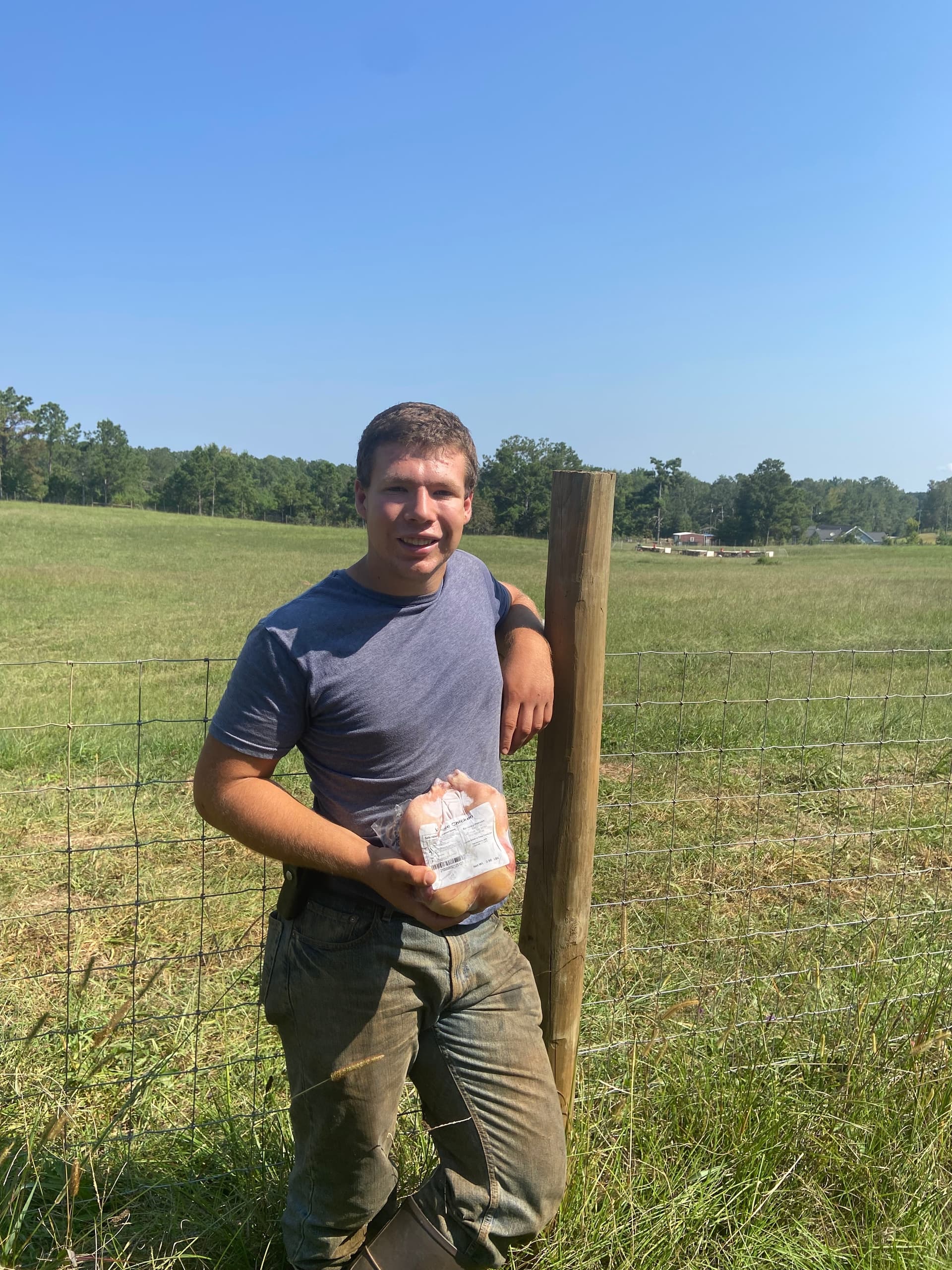 Our chickens and turkeys are rotationally pasture raised and grown on our small farm. We feed Non-GMO feed and never use any antibiotics or hormones. They are processed at a USDA facility for small farmers and frozen. Our pasture is not treated with any pesticides, herbicides, synthetic fertilizers, or other chemicals.