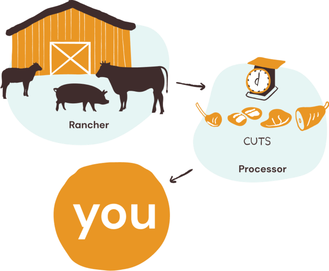 In some cases, farms and ranches have banded together under one brand and even invested in their own processing facility. In other cases the farm/s partner with a processor to make available the cuts they want to sell directly to people like you. This model means farmers are getting paid more for their product because there’s no middle man (save for the processor) between them and you.
