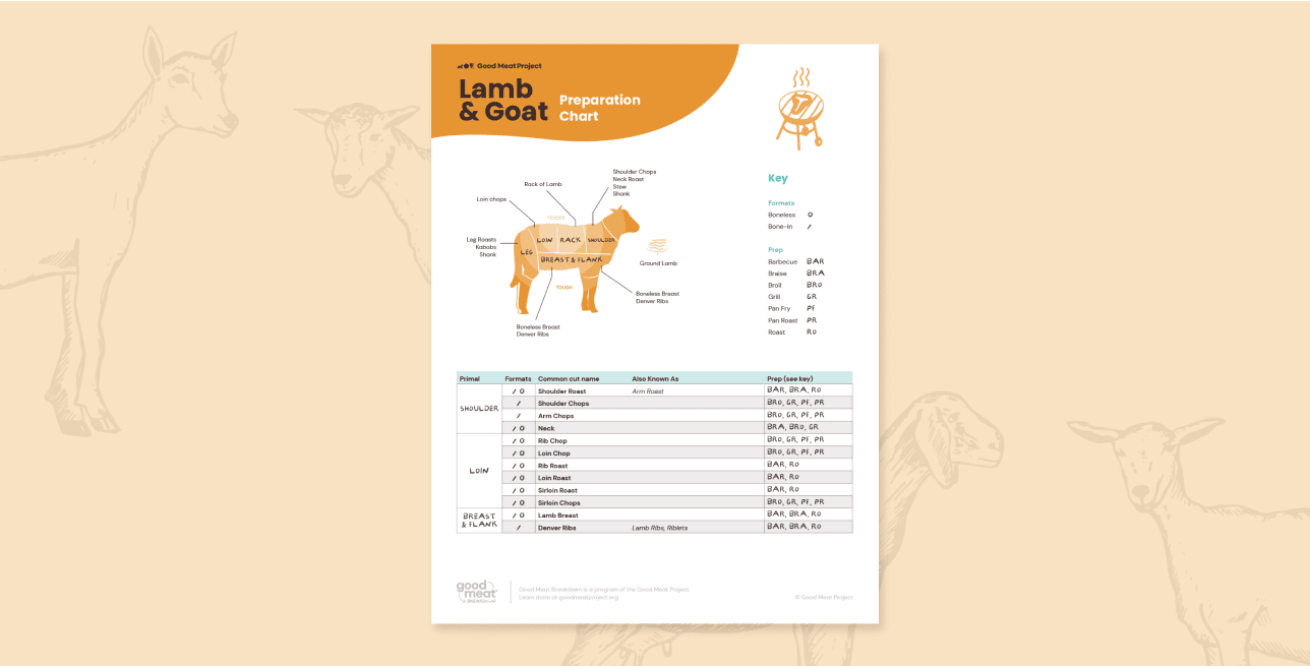 This handy printable guide summarizes the recommended cooking methods for various cuts of lamb or goat.
