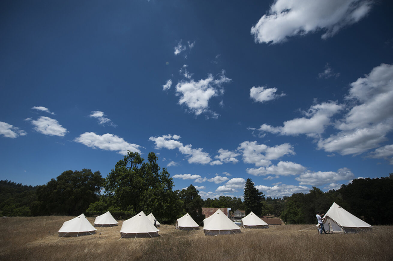 Guests who wish to stay overnight can secure a "glamping tent for two" and stay overnight on the ranch. Overnight guests will enjoy a quiet morning with coffee, tea, and pastries before departure before 10am.